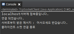 System.out.println("클라이언트 소켓 연결 종료");
