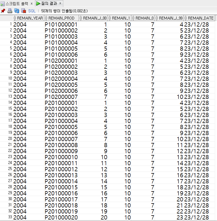 TO_NUMBER(SUBSTR(PROD_ID,-2))+10-7, --REMAIN_J_99