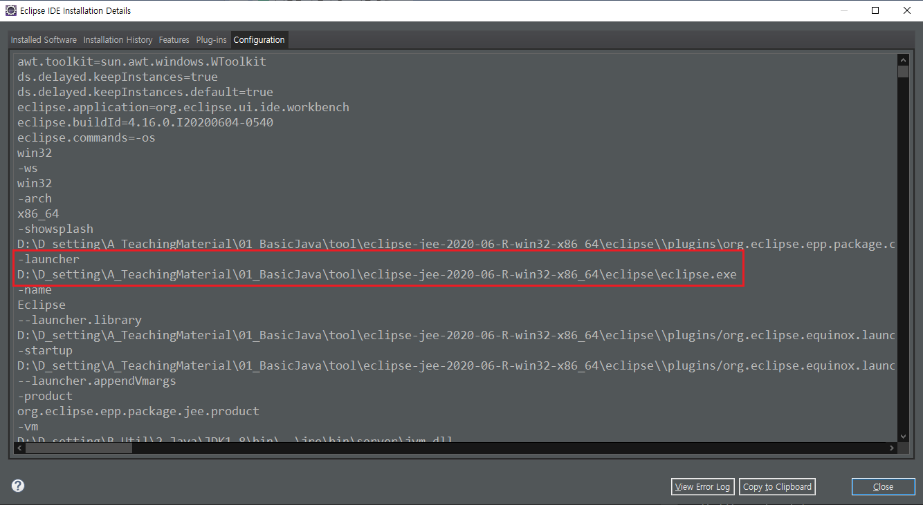 3. Configuration 에서 launcher 에서 설치 경로 확인