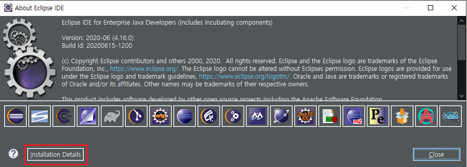 1. 상단 메뉴바 > Help > About Eclipse IDE