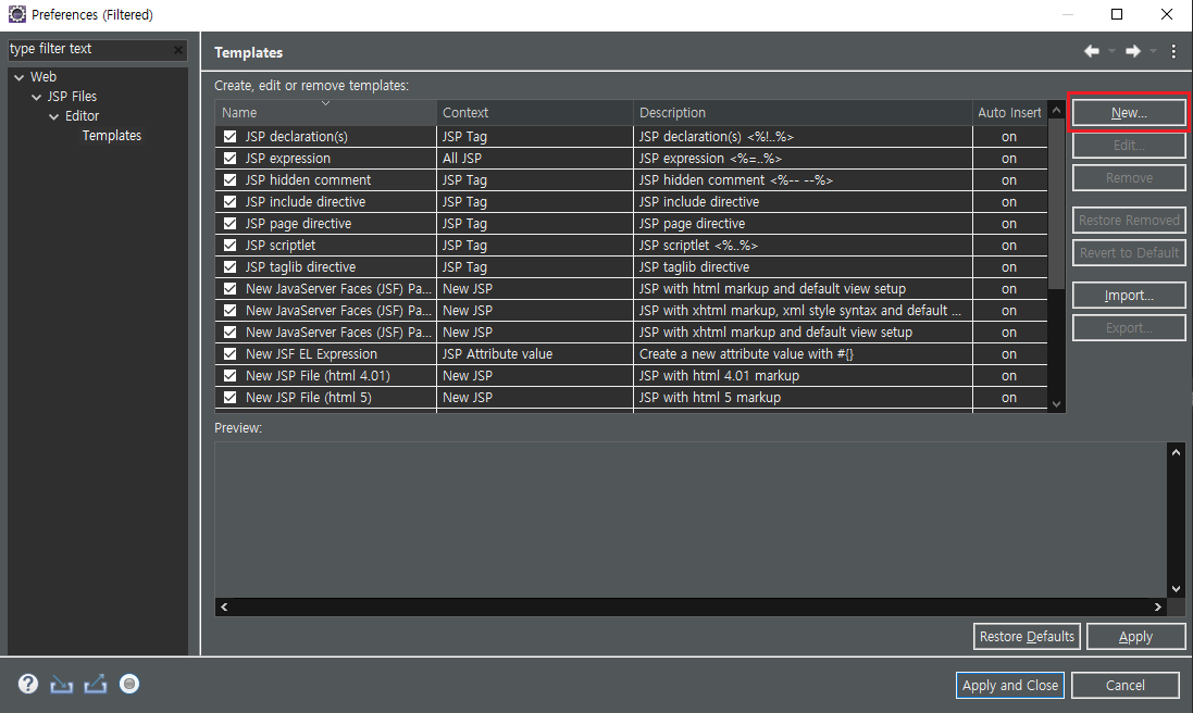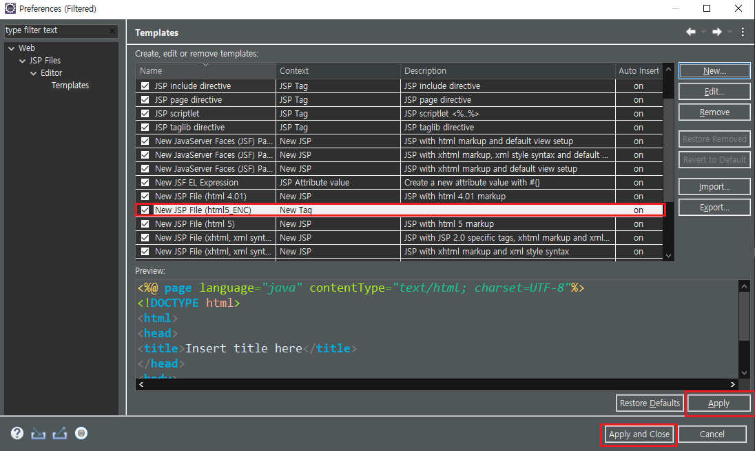 JSP File 생성 > 오른쪽 하단 JSP Templates 클릭