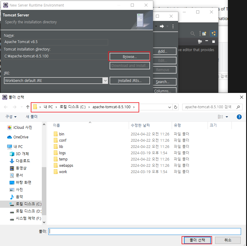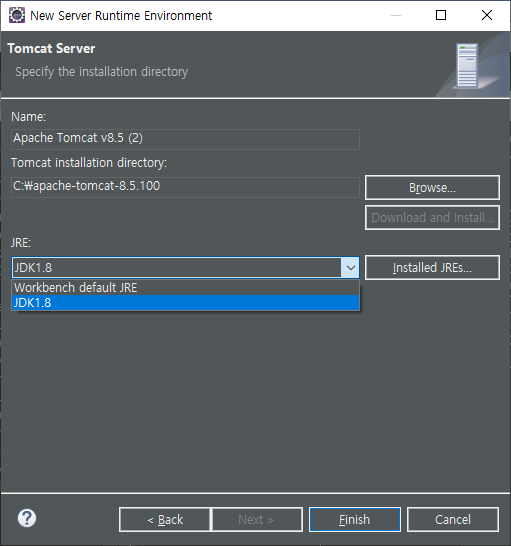 Browse... 클릭 > 톰캣 설치 경로 폴더 선택