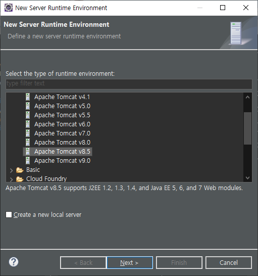 설치된 Tomcat 버전에 맞게 고르기 > Next 클릭