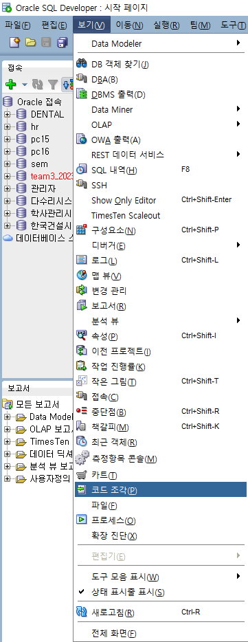 상단메뉴 > 보기(V) 클릭 > 코드조각(P) 클릭