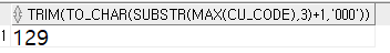 SELECT TRIM(TO_CHAR(SUBSTR(MAX(CU_CODE),3) + 1,'000'))