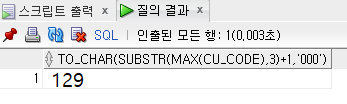 SELECT TO_CHAR(SUBSTR(MAX(CU_CODE),3)+1,'000')