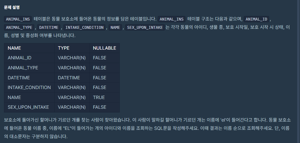 - UPPER(NAME) LIKE '%EL%' 는 NAME 컬럼의 값이 대소문자에 상관없이 'EL'을 포함하는지 검사합니다.