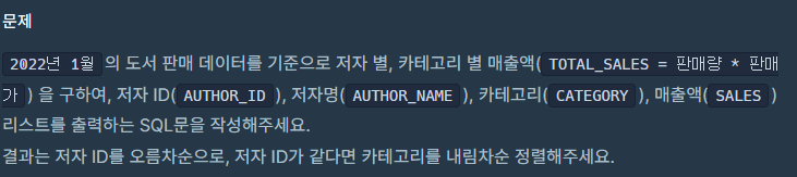 SELECT A.AUTHOR_ID,B.AUTHOR_NAME,A.CATEGORY,SUM(C.SALES * PRICE) TOTAL_SALES