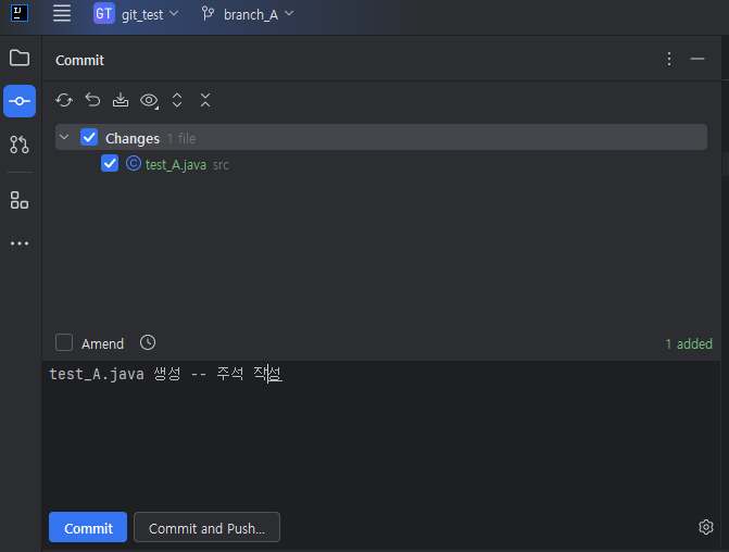 Commit할 파일 선택 -> 주석 작성 -> Commit 클릭